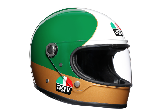 The X3000 AGO bears the color of the Italian flag and is seen from behind, which Agostini likes to joke is how his rivals saw the helmet: from behind. It offers all the modern safety features, whilst retaining the authentic style of the original design which includes a contoured chin guard. It is currently priced at SG$898.