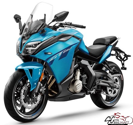 The CFMoto 650GT is a dynamic sport-tourer designed for adventure enthusiasts. Its 649cc parallel-twin engine delivers 55.7 hp and 62 Nm, ensuring smooth, powerful rides. Weighing 216 kg, it features adjustable KYB suspension, Bosch ABS, and Metzeler tires for superior handling. The 19L fuel tank supports long journeys, while the 5” TFT display with RideSync connectivity keeps riders connected. With KISKA-designed sleek styling, a windscreen, and an affordable price, the 650GT blends comfort, advanced technology, and performance, making it ideal for thrilling highway cruises and spirited urban adventures.