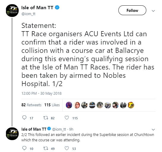 We find out about these catastrophic events through the statement issued by the Isle of Man TT official Twitter account (@iom_tt):